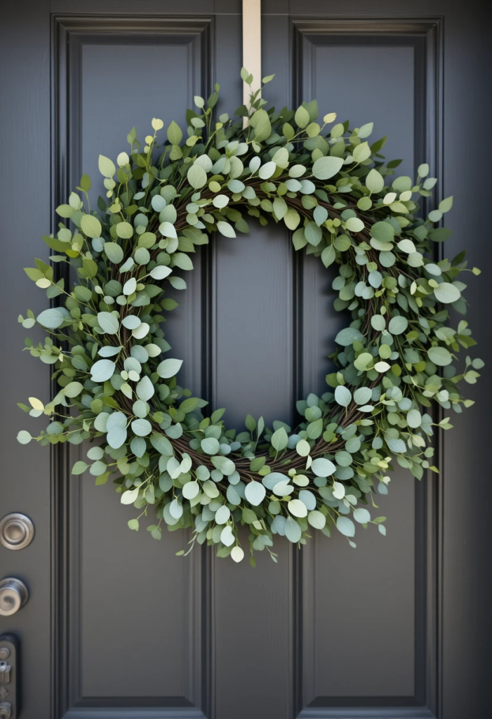 Minimalists will love a simple yet elegant greenery wreath. Made with eucalyptus, boxwood, or olive branches, this fresh and natural design complements any decor style.