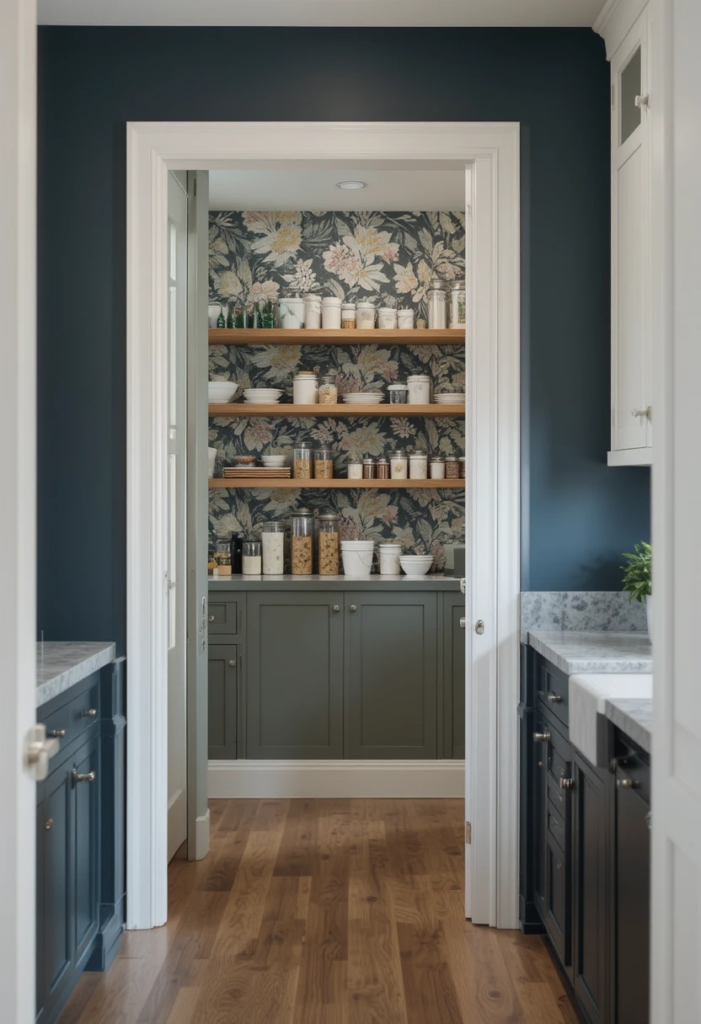 Why not give your pantry a little personality? Peel-and-stick wallpaper or a pop of color on the back wall can make the space feel intentional and styled. It’s a quick DIY that brings in charm without a lot of effort.