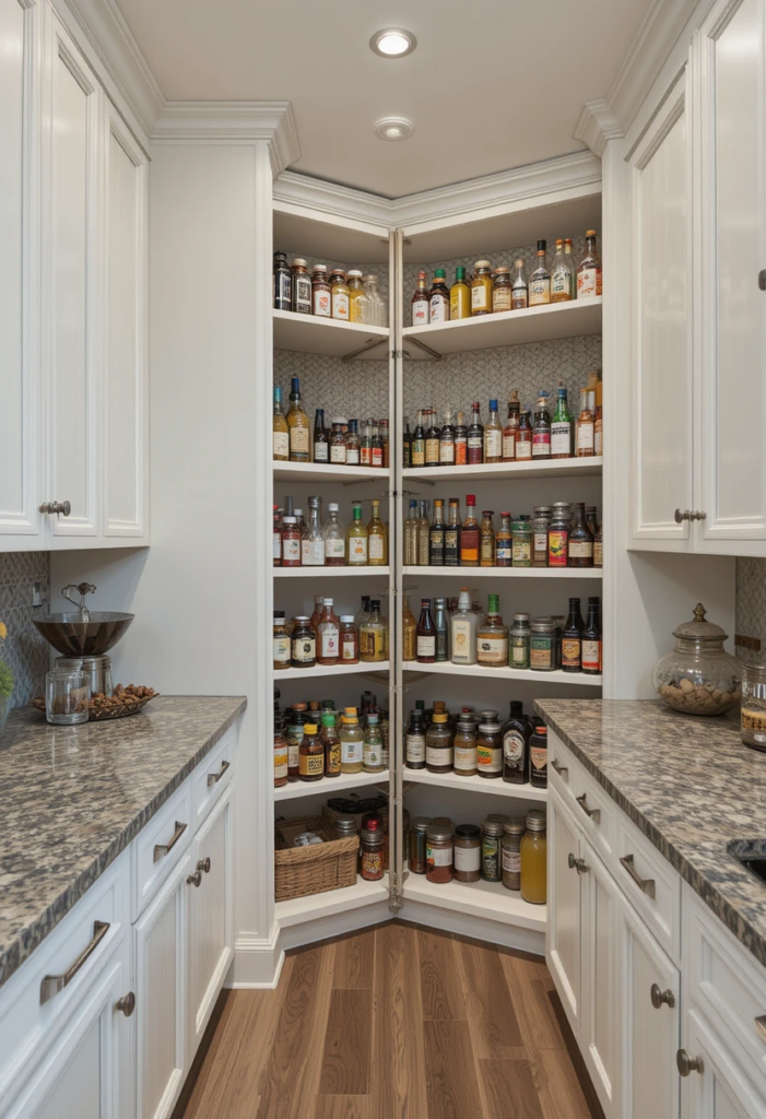 Lazy Susans aren’t just for grandma’s dining table—they’re pantry gold. Perfect for corners or deep shelves, a turntable keeps oils, spices, and sauces easy to grab without knocking everything over.