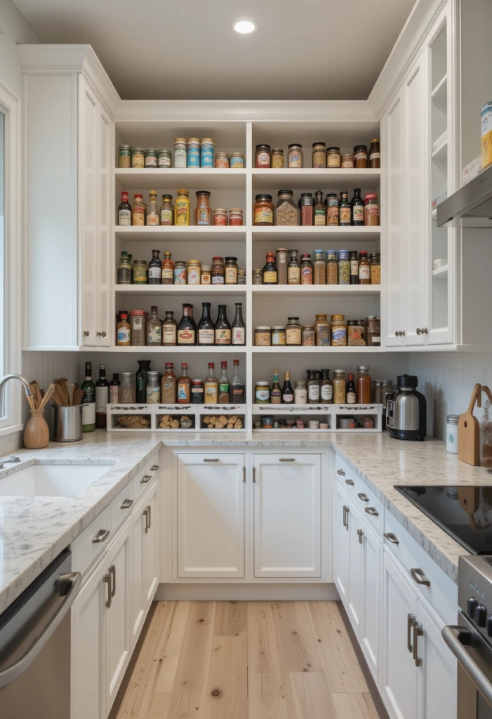 Great lighting isn’t just for your living room. Add LED strips or tap lights inside your pantry for better visibility and a touch of luxury. It’s a small update that makes a big difference, especially during those late-night snack runs.