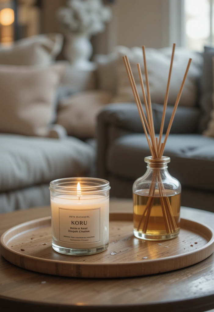 Fresh scents can completely transform the atmosphere of a room. A candle or reed diffuser in fragrances like lavender, citrus, or jasmine brings a subtle yet refreshing touch to your coffee table.