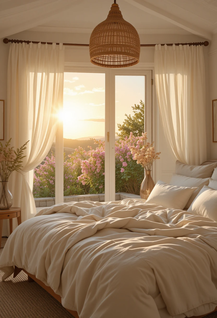 Summer light is something special — soft, golden, and perfect for creating a dreamy atmosphere. Swap out heavy curtains for sheer or gauzy panels to let that light filter in beautifully.